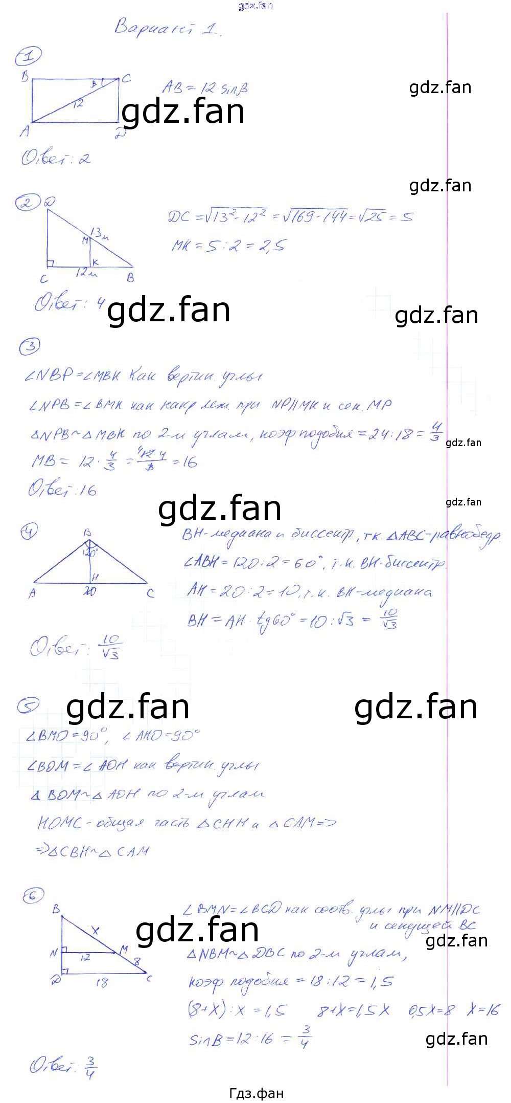 Проверка домашнего задания всегда занимает большое количество времени. На помощь приходит ГДЗ фан по Геометрии восьмого класса. Здесь собраны популярные ответы на Вариант №1 (стр. 31-32) Геометрия 8 класс контрольные работы Мельникова Н.Б. (к уч. Атанасяна)