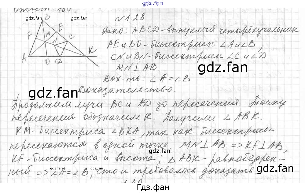 Проверка домашнего задания всегда занимает большое количество времени. На помощь приходит ГДЗ фан по Геометрии восьмого класса. Здесь собраны популярные ответы на 1.28 (стр. 11) Геометрия 8 класс углубленное изучение Мерзляк А.Г.