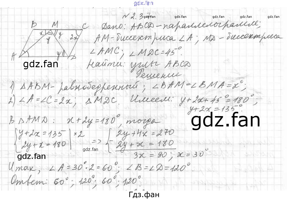 Проверка домашнего задания всегда занимает большое количество времени. На помощь приходит ГДЗ фан по Геометрии восьмого класса. Здесь собраны популярные ответы на 2.37 (стр. 19) Геометрия 8 класс углубленное изучение Мерзляк А.Г.