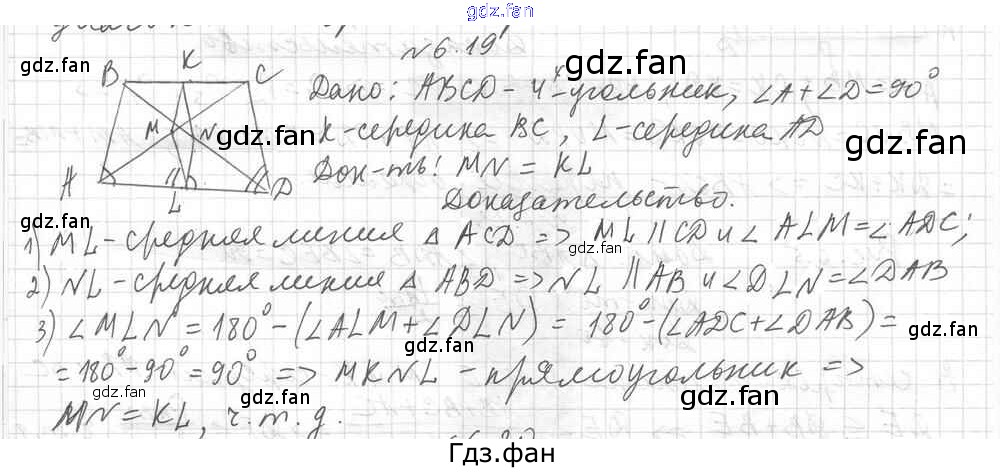 Проверка домашнего задания всегда занимает большое количество времени. На помощь приходит ГДЗ фан по Геометрии восьмого класса. Здесь собраны популярные ответы на 6.19 (стр. 43) Геометрия 8 класс углубленное изучение Мерзляк А.Г.