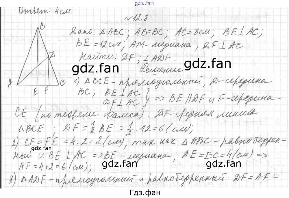 Проверка домашнего задания всегда занимает большое количество времени. На помощь приходит ГДЗ фан по Геометрии восьмого класса. Здесь собраны популярные ответы на 12.8 (стр. 95) Геометрия 8 класс углубленное изучение Мерзляк А.Г.