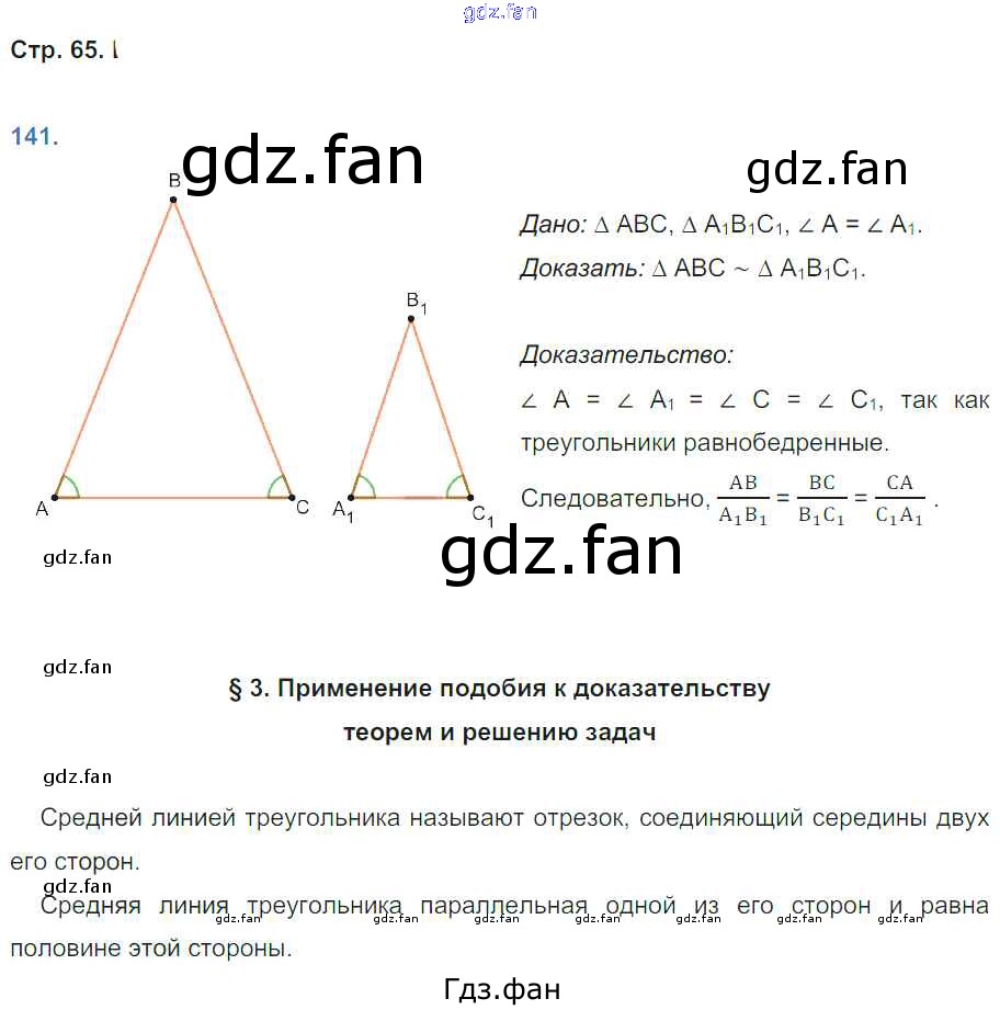 Проверка домашнего задания всегда занимает большое количество времени. На помощь приходит ГДЗ фан по Геометрии восьмого класса. Здесь собраны популярные ответы на 65 (№ 141. §3. Применение подобия к доказательству теорем и решению задач) Геометрия 8 класс рабочая тетрадь Мищенко Т.М. (к уч. Атанасяна)