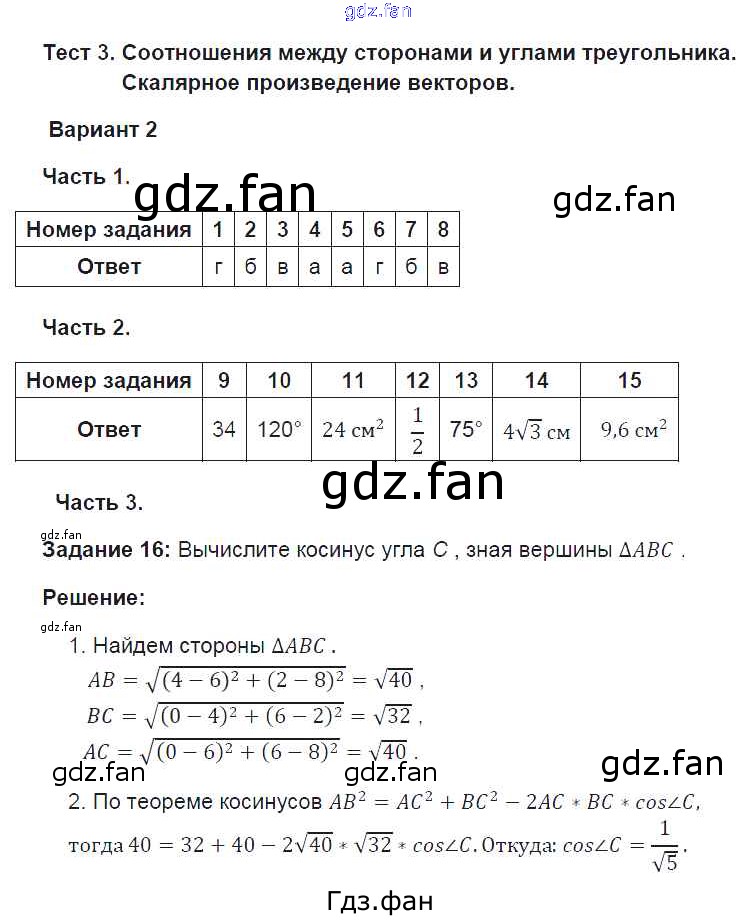 Проверка домашнего задания всегда занимает большое количество времени. На помощь приходит ГДЗ фан по Геометрии девятого класса. Здесь собраны популярные ответы на 2 (стр. 37-40) Геометрия 9 класс тесты Фарков А.В. (к новому уч. Атанасяна Л.С.)