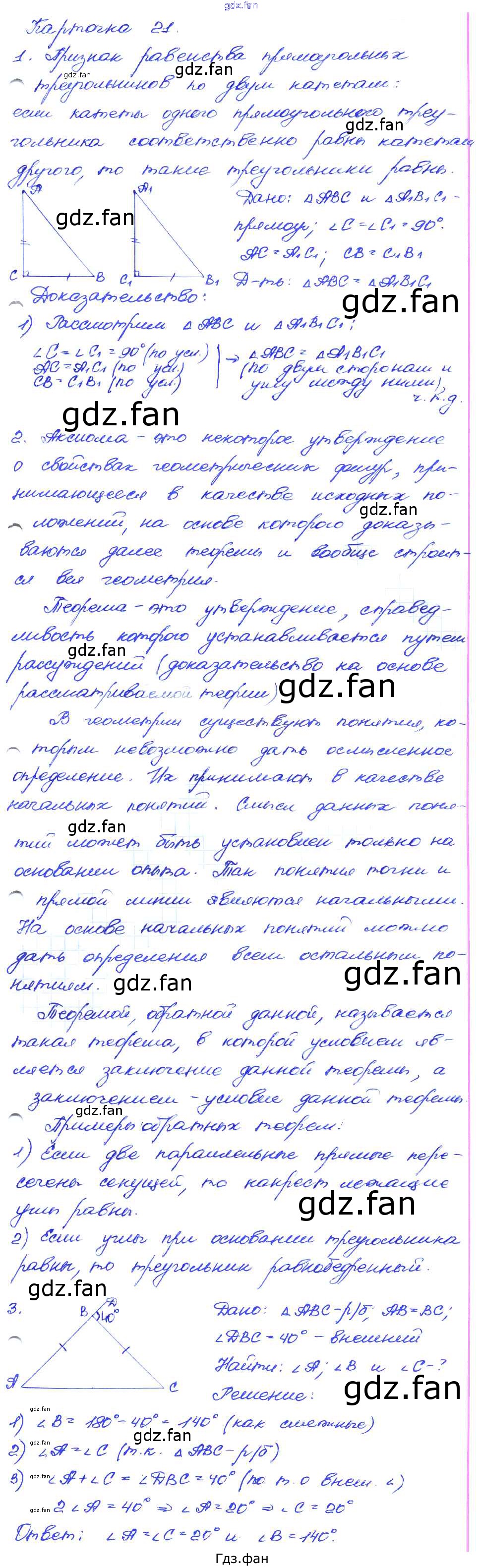 Проверка домашнего задания всегда занимает большое количество времени. На помощь приходит ГДЗ фан по Геометрии седьмого класса. Здесь собраны популярные ответы на 21 (стр. 43) Геометрия 7-9 классы самостоятельные и контрольные работы Иченская М.А.