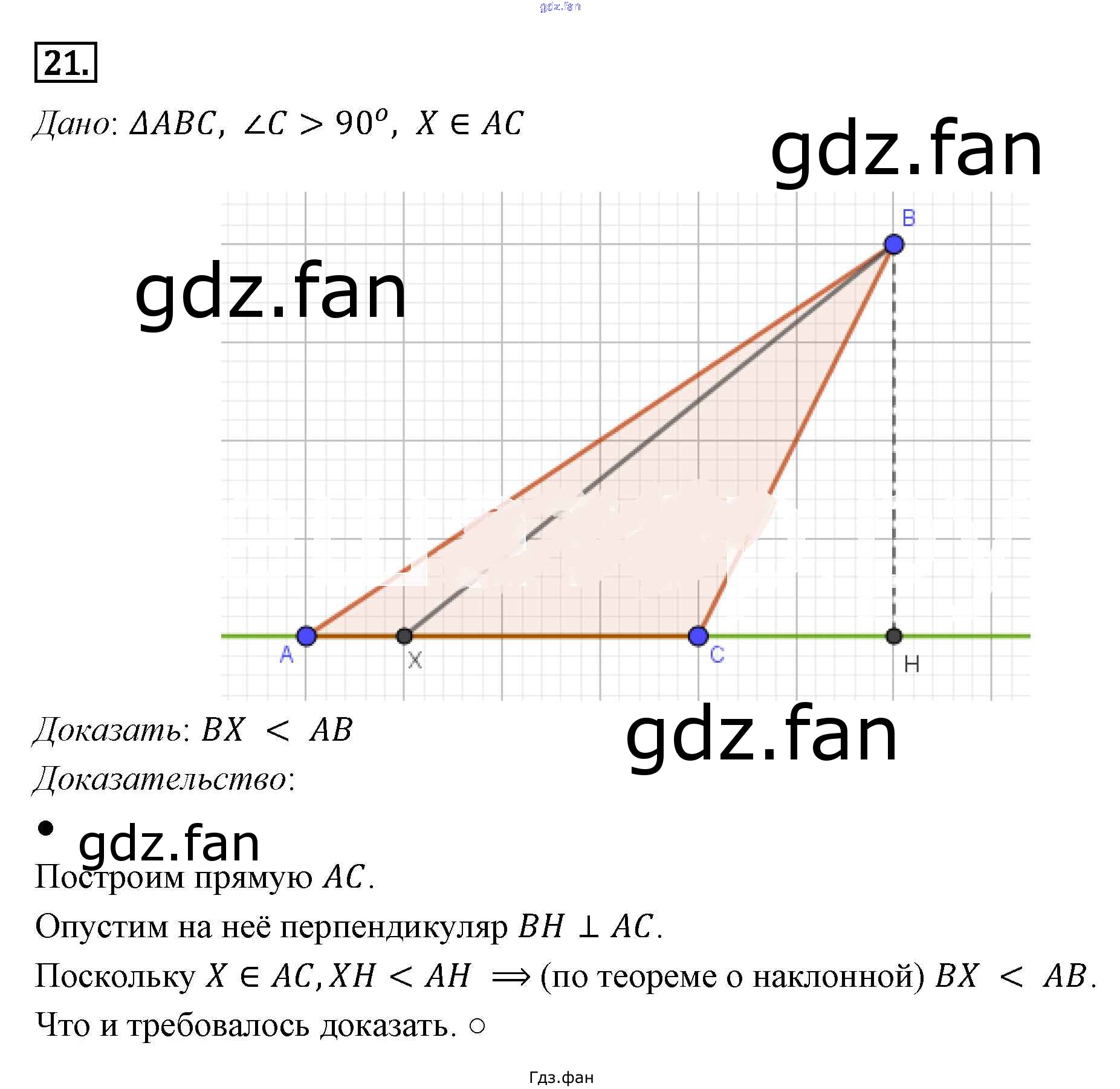 Проверка домашнего задания всегда занимает большое количество времени. На помощь приходит ГДЗ фан по Геометрии седьмого класса. Здесь собраны популярные ответы на 21 (стр. 178) Геометрия 7-9 классы Погорелов А.В.
