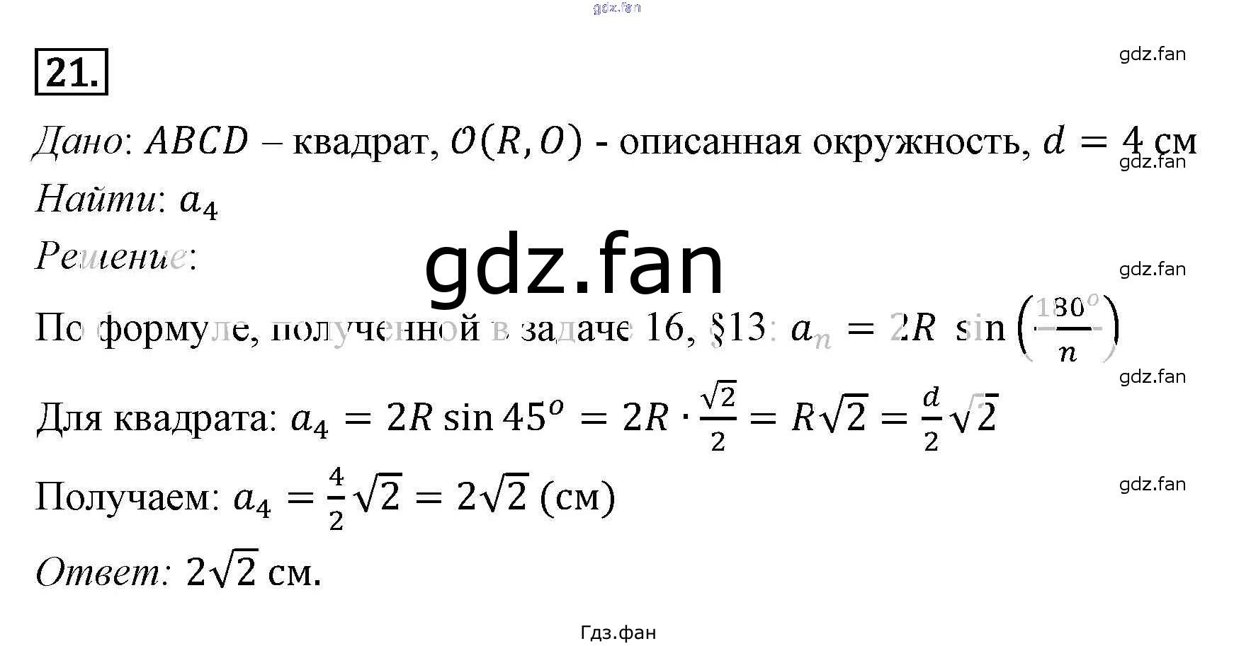 Проверка домашнего задания всегда занимает большое количество времени. На помощь приходит ГДЗ фан по Геометрии седьмого класса. Здесь собраны популярные ответы на 21 (стр. 193) Геометрия 7-9 классы Погорелов А.В.