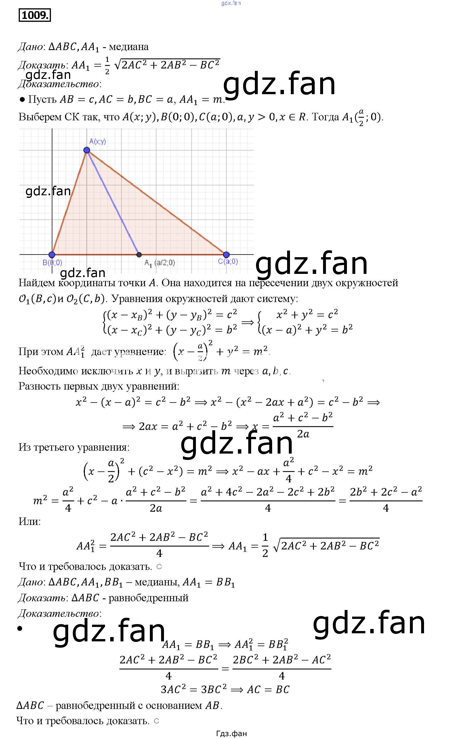 Проверка домашнего задания всегда занимает большое количество времени. На помощь приходит ГДЗ фан по Геометрии седьмого класса. Здесь собраны популярные ответы на 1009 (стр. 251) Геометрия 7-9 классы Атанасян Л.С.