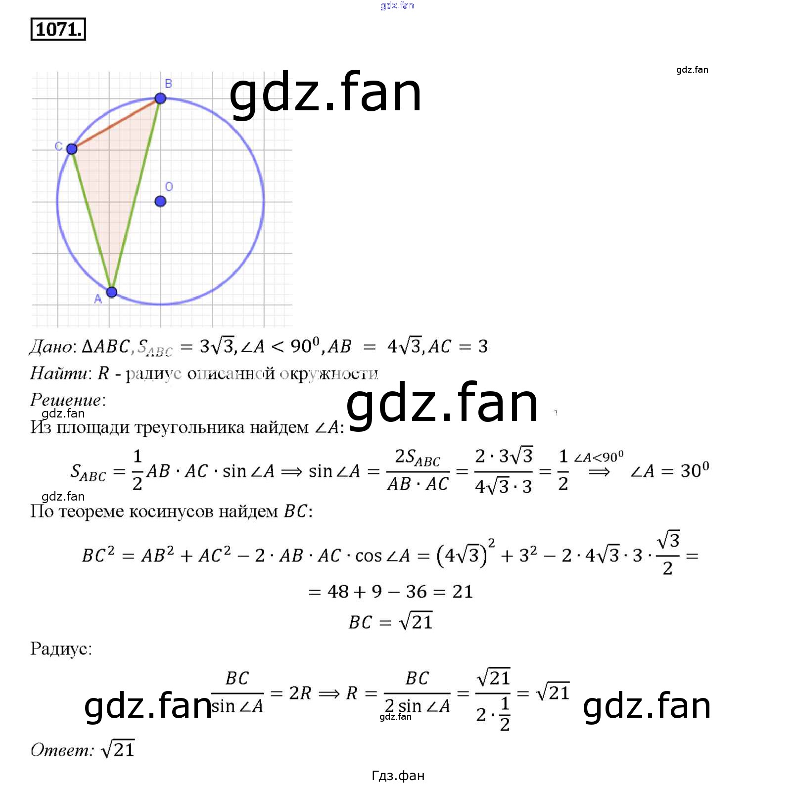 Проверка домашнего задания всегда занимает большое количество времени. На помощь приходит ГДЗ фан по Геометрии седьмого класса. Здесь собраны популярные ответы на 1071 (стр. 273) Геометрия 7-9 классы Атанасян Л.С.