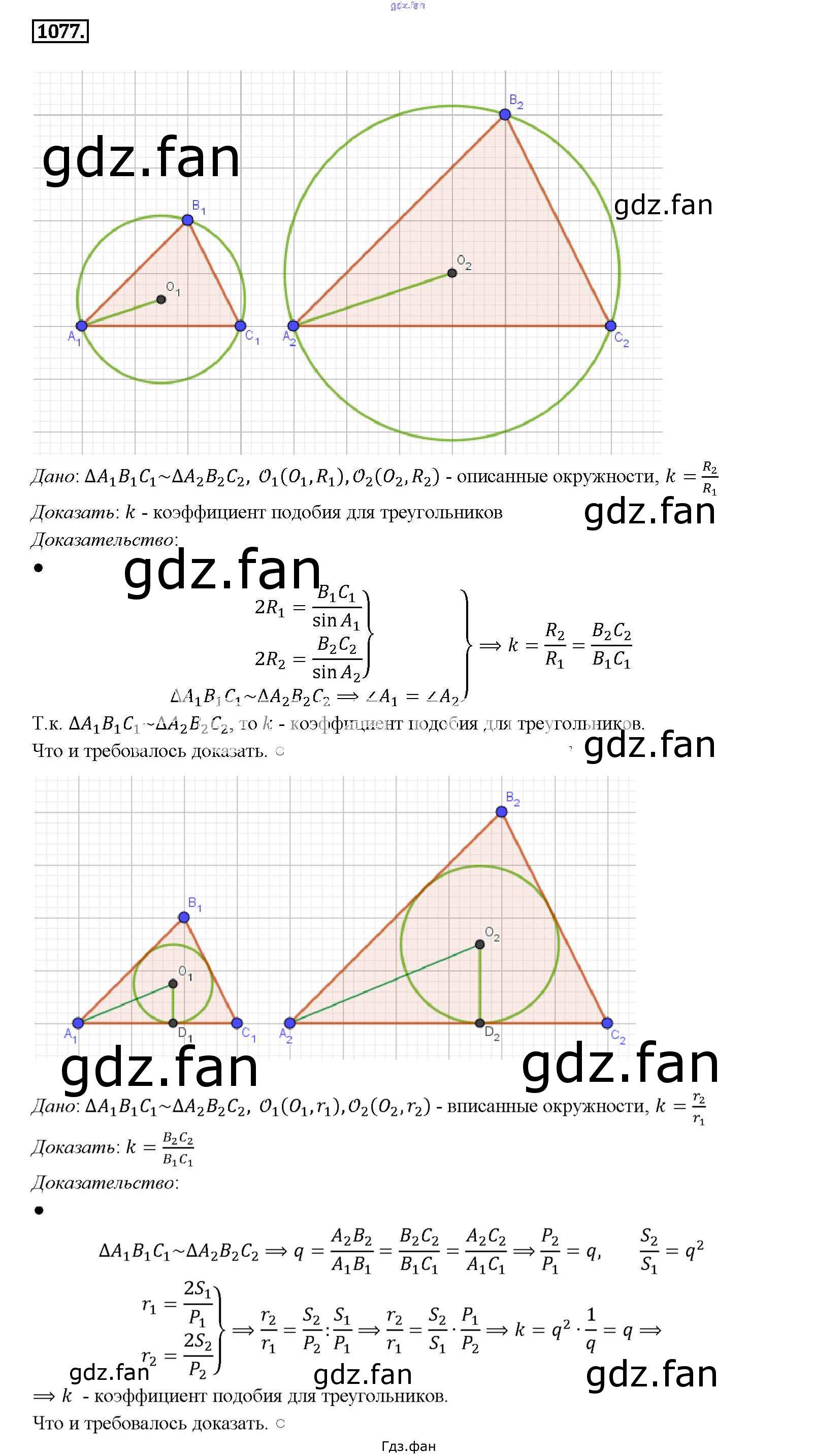 Проверка домашнего задания всегда занимает большое количество времени. На помощь приходит ГДЗ фан по Геометрии седьмого класса. Здесь собраны популярные ответы на 1077 (стр. 274) Геометрия 7-9 классы Атанасян Л.С.