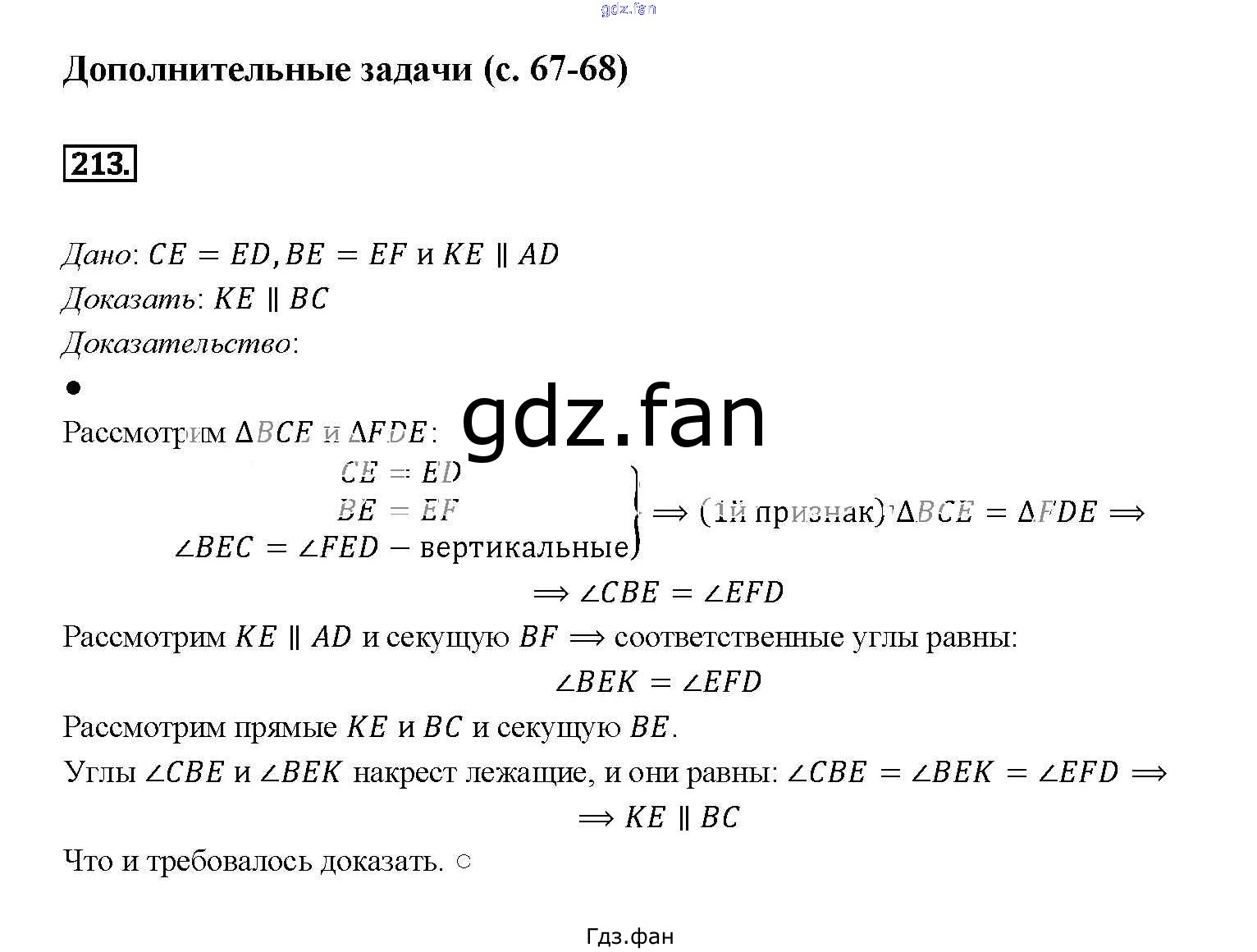 Проверка домашнего задания всегда занимает большое количество времени. На помощь приходит ГДЗ фан по Геометрии седьмого класса. Здесь собраны популярные ответы на 213 (стр. 68) Геометрия 7-9 классы Атанасян Л.С.
