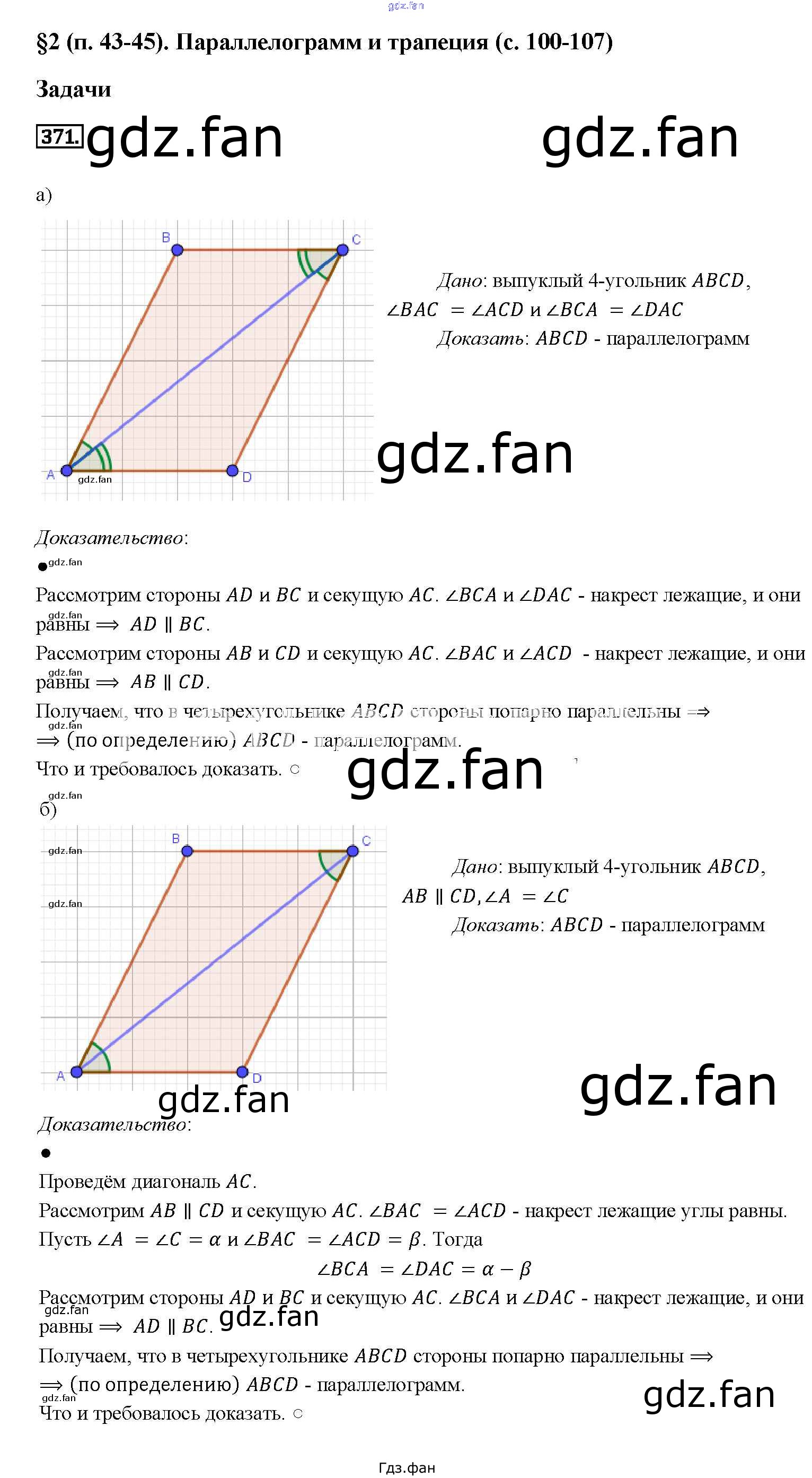 Проверка домашнего задания всегда занимает большое количество времени. На помощь приходит ГДЗ фан по Геометрии седьмого класса. Здесь собраны популярные ответы на 371 (стр. 104) Геометрия 7-9 классы Атанасян Л.С.