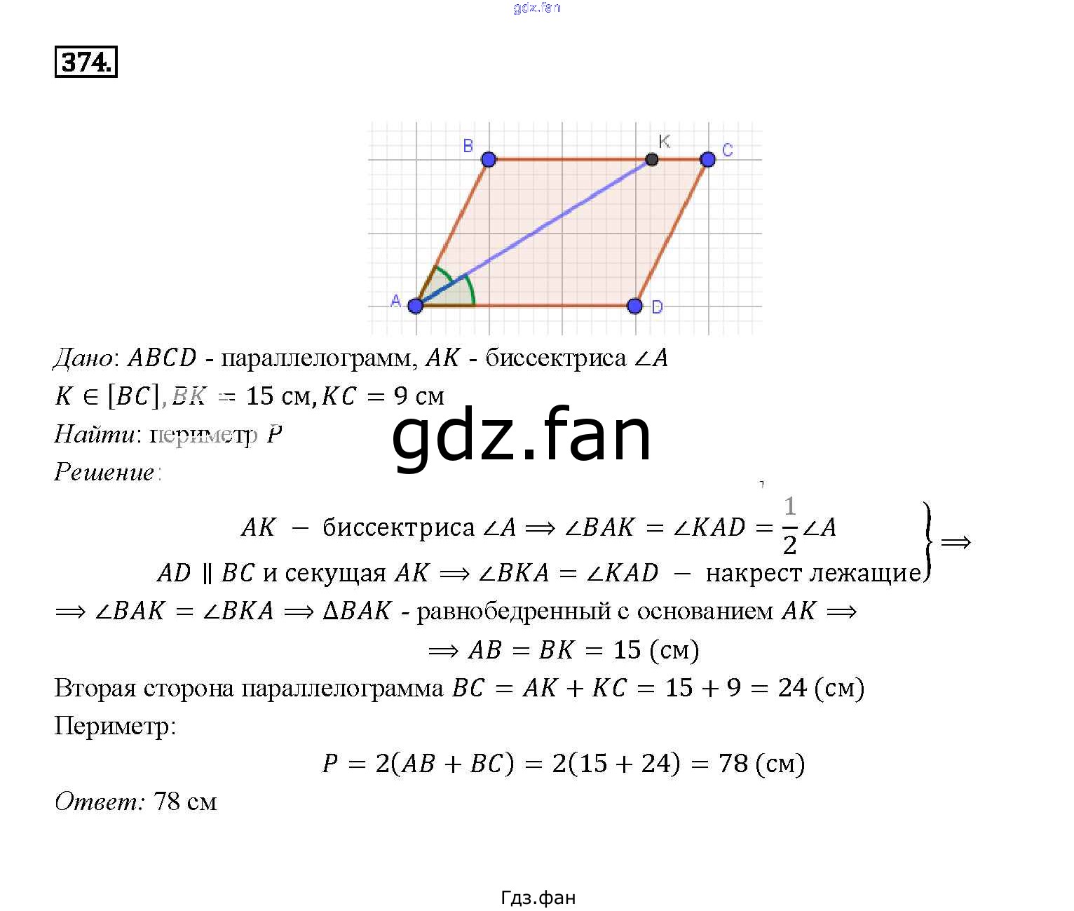 Проверка домашнего задания всегда занимает большое количество времени. На помощь приходит ГДЗ фан по Геометрии седьмого класса. Здесь собраны популярные ответы на 374 (стр. 104) Геометрия 7-9 классы Атанасян Л.С.