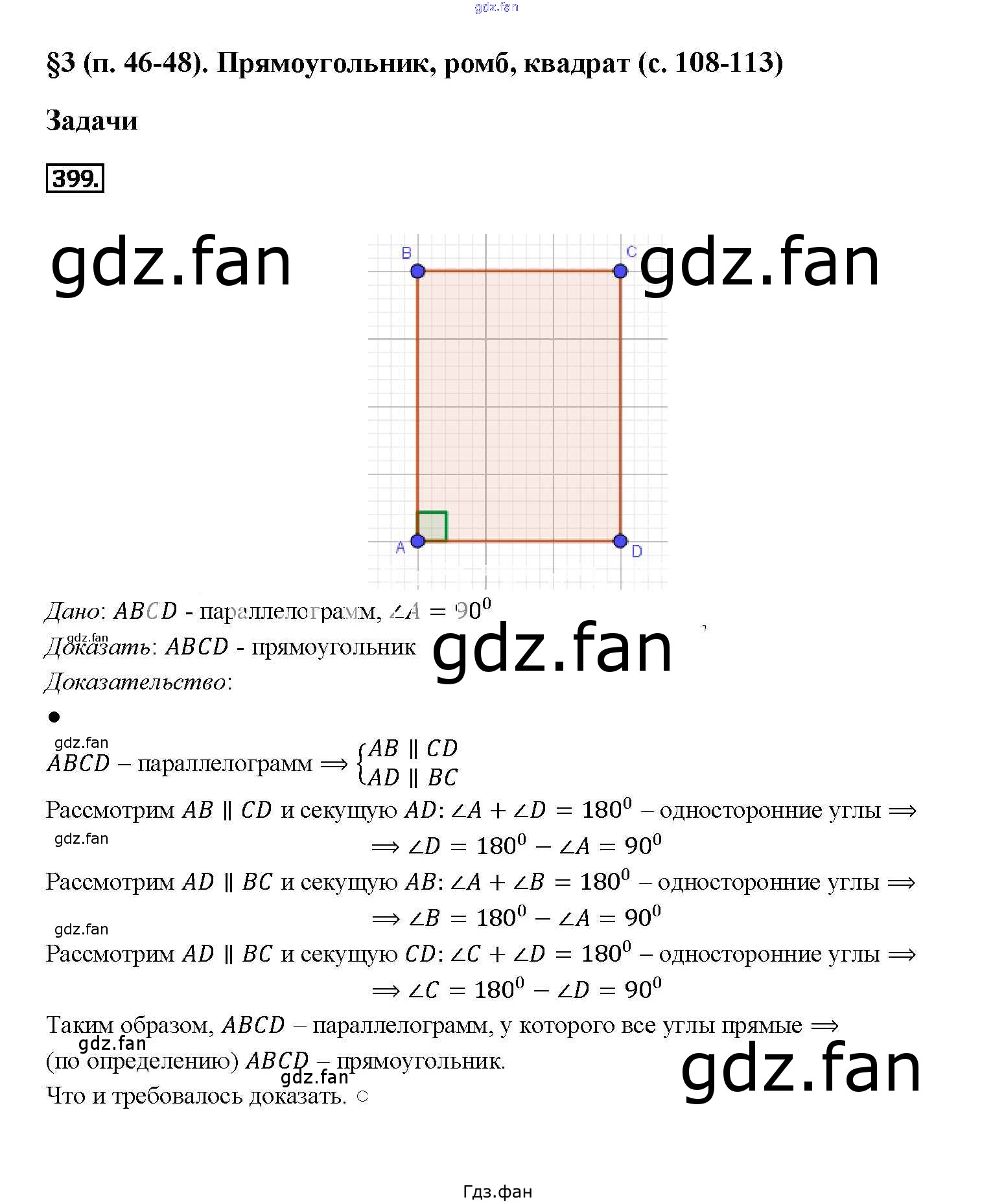 Проверка домашнего задания всегда занимает большое количество времени. На помощь приходит ГДЗ фан по Геометрии седьмого класса. Здесь собраны популярные ответы на 399 (стр. 113) Геометрия 7-9 классы Атанасян Л.С.