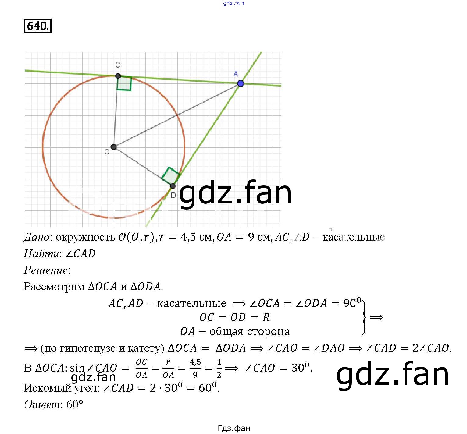 Проверка домашнего задания всегда занимает большое количество времени. На помощь приходит ГДЗ фан по Геометрии седьмого класса. Здесь собраны популярные ответы на 640 (стр. 168) Геометрия 7-9 классы Атанасян Л.С.