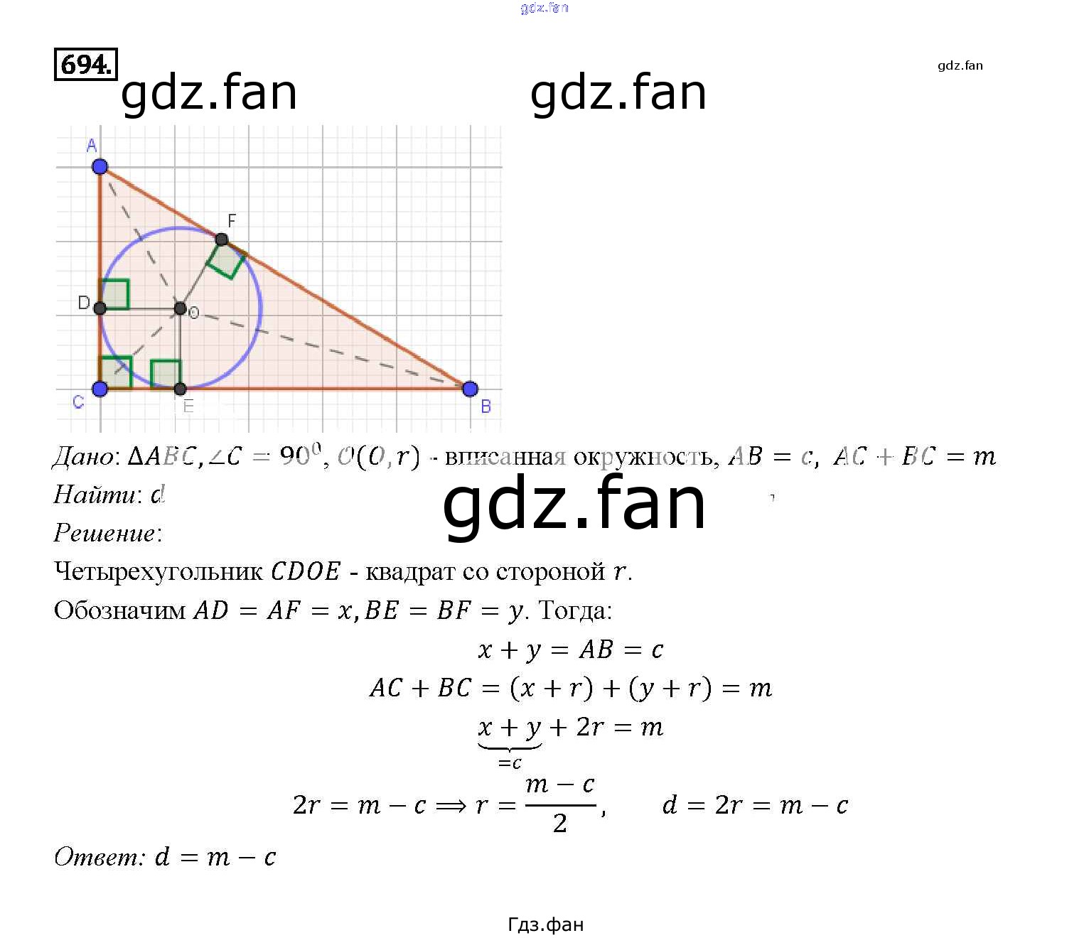 Проверка домашнего задания всегда занимает большое количество времени. На помощь приходит ГДЗ фан по Геометрии седьмого класса. Здесь собраны популярные ответы на 694 (стр. 185) Геометрия 7-9 классы Атанасян Л.С.