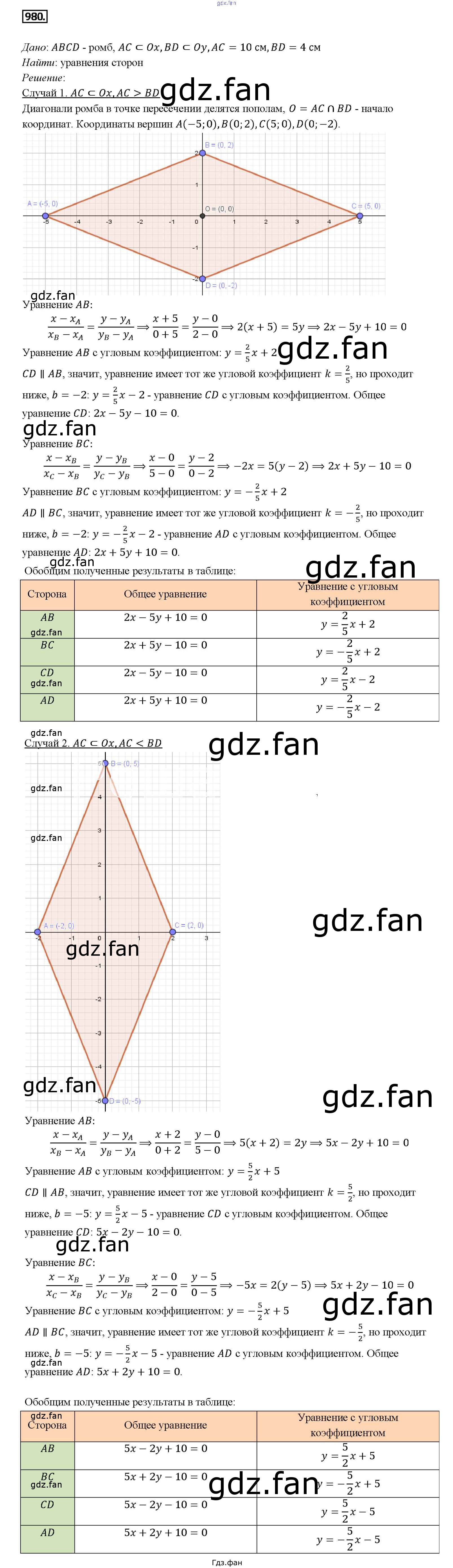 Проверка домашнего задания всегда занимает большое количество времени. На помощь приходит ГДЗ фан по Геометрии седьмого класса. Здесь собраны популярные ответы на 980 (стр. 246) Геометрия 7-9 классы Атанасян Л.С.