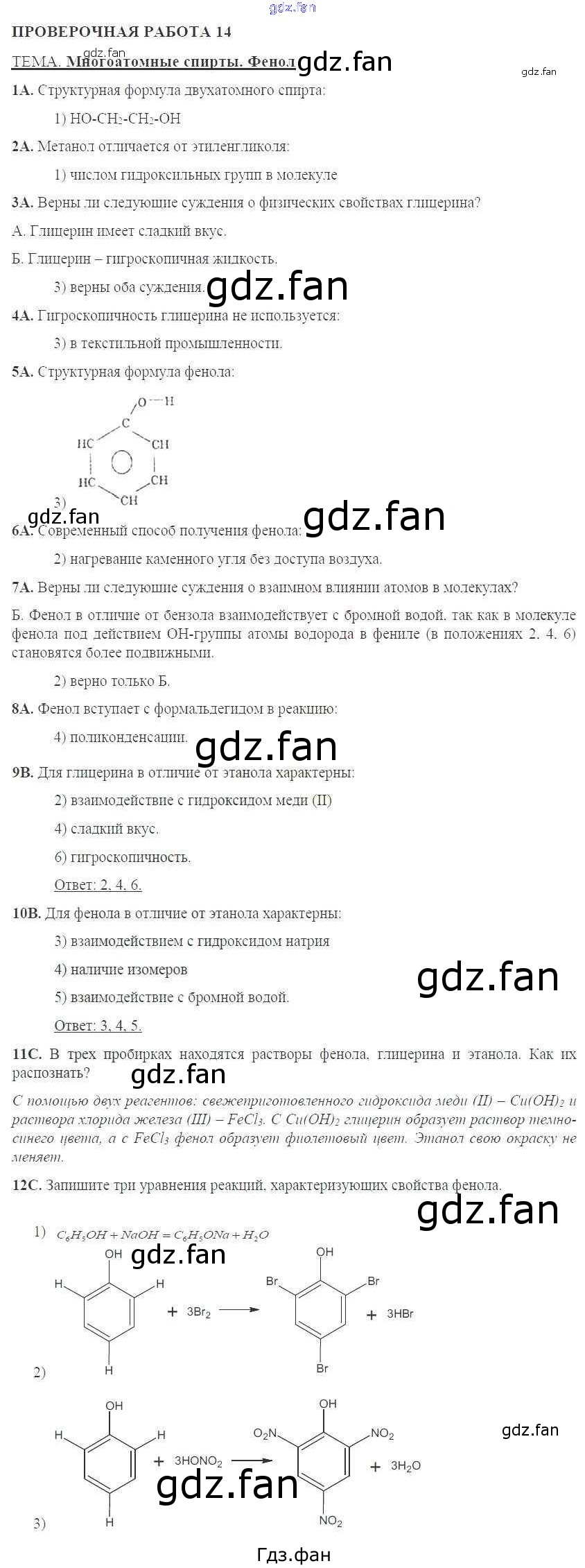 Проверка домашнего задания всегда занимает большое количество времени. На помощь приходит ГДЗ фан по Химии десятого класса. Здесь собраны популярные ответы на 14 (Многоатомные спирты. Фенол стр. 57-60) Химия 10 класс тетрадь для оценки качества знаний Габриелян О.С.
