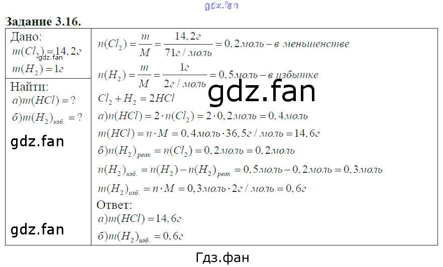 Проверка домашнего задания всегда занимает большое количество времени. На помощь приходит ГДЗ фан по Химии восьмого класса. Здесь собраны популярные ответы на 3.16 (стр. 19) Химия 8-11 классы сборник задач и упражнений Хомченко И.Г.