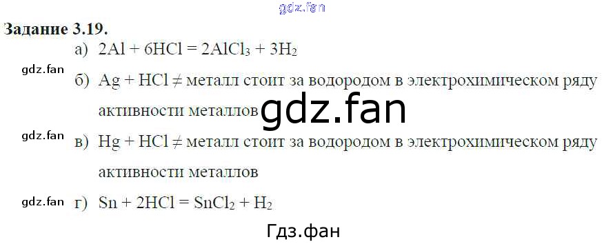 Проверка домашнего задания всегда занимает большое количество времени. На помощь приходит ГДЗ фан по Химии восьмого класса. Здесь собраны популярные ответы на 3.19 (стр. 19) Химия 8-11 классы сборник задач и упражнений Хомченко И.Г.