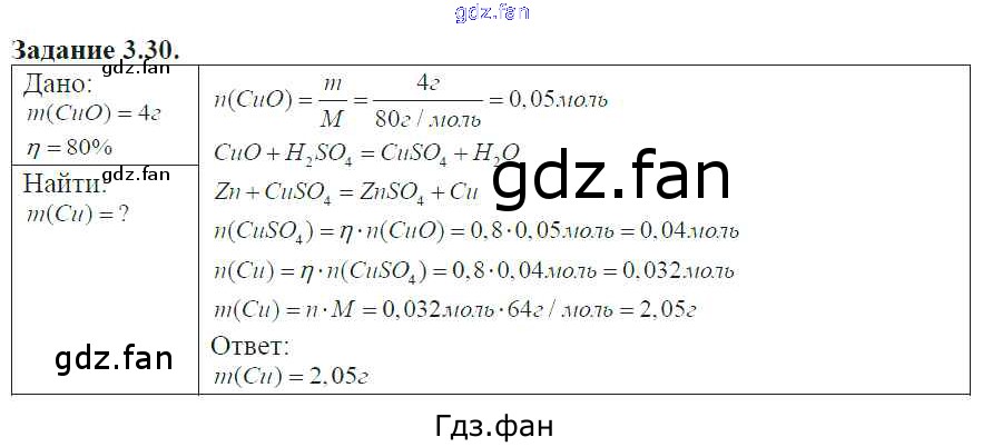 Проверка домашнего задания всегда занимает большое количество времени. На помощь приходит ГДЗ фан по Химии восьмого класса. Здесь собраны популярные ответы на 3.30 (стр. 20) Химия 8-11 классы сборник задач и упражнений Хомченко И.Г.
