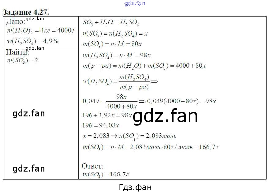 Проверка домашнего задания всегда занимает большое количество времени. На помощь приходит ГДЗ фан по Химии восьмого класса. Здесь собраны популярные ответы на 4.27 (стр. 23) Химия 8-11 классы сборник задач и упражнений Хомченко И.Г.