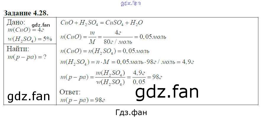 Проверка домашнего задания всегда занимает большое количество времени. На помощь приходит ГДЗ фан по Химии восьмого класса. Здесь собраны популярные ответы на 4.28 (стр. 23) Химия 8-11 классы сборник задач и упражнений Хомченко И.Г.