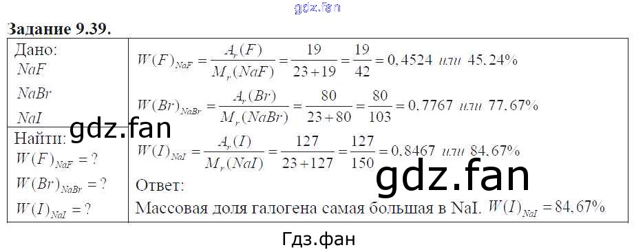 Проверка домашнего задания всегда занимает большое количество времени. На помощь приходит ГДЗ фан по Химии восьмого класса. Здесь собраны популярные ответы на 9.39 (стр. 49) Химия 8-11 классы сборник задач и упражнений Хомченко И.Г.