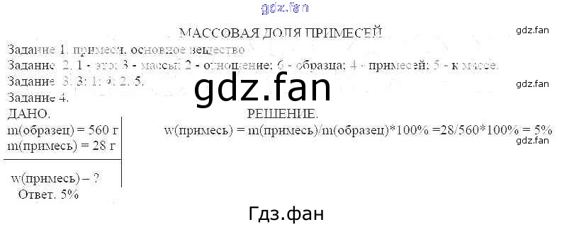 Проверка домашнего задания всегда занимает большое количество времени. На помощь приходит ГДЗ фан по Химии седьмого класса. Здесь собраны популярные ответы на 63 (Массовая доля примесей № 1, 2, 3, 4) Химия 7 класс рабочая тетрадь Габриелян