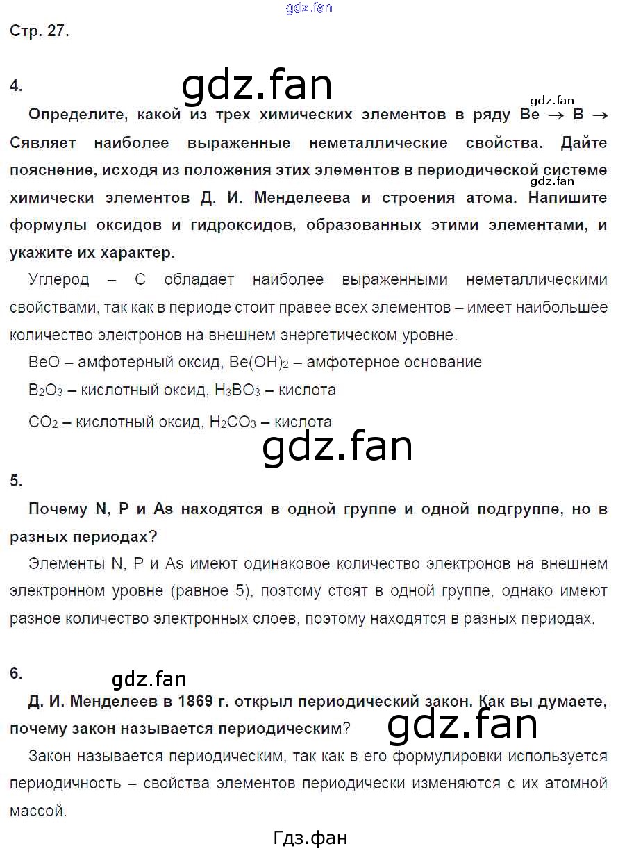 Проверка домашнего задания всегда занимает большое количество времени. На помощь приходит ГДЗ фан по Химии восьмого класса. Здесь собраны популярные ответы на 27 (№ 4, 5, 6) Химия 8 класс тетрадь-экзаменатор Бобылёва О.Л.