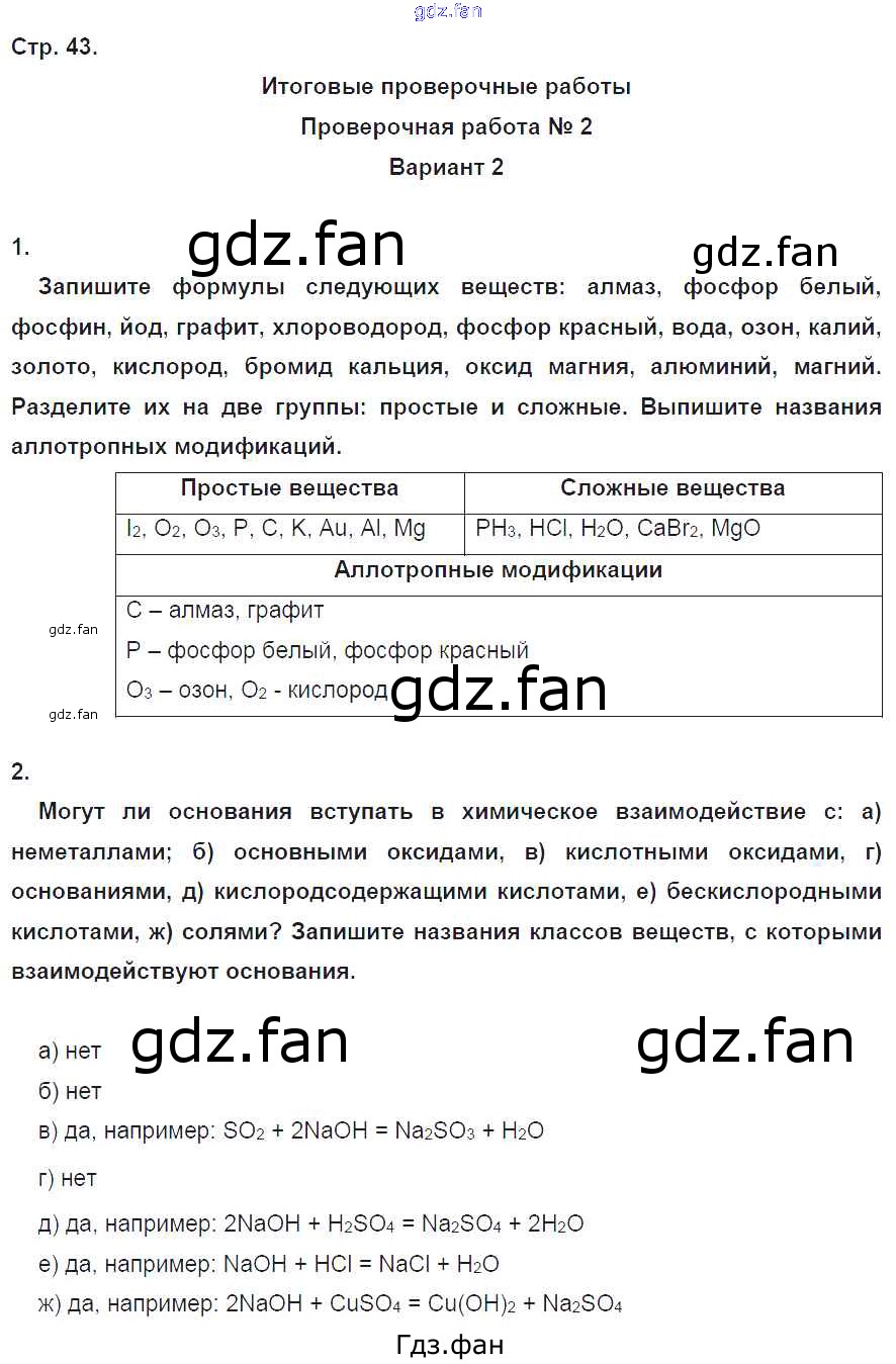 Проверка домашнего задания всегда занимает большое количество времени. На помощь приходит ГДЗ фан по Химии восьмого класса. Здесь собраны популярные ответы на 43 (Вариант 2 № 1, 2) Химия 8 класс тетрадь-экзаменатор Бобылёва О.Л.