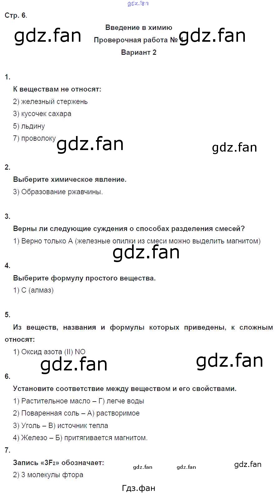 Проверка домашнего задания всегда занимает большое количество времени. На помощь приходит ГДЗ фан по Химии восьмого класса. Здесь собраны популярные ответы на 6 (Вариант 2 № 1, 2, 3, 4, 5, 6, 7) Химия 8 класс тетрадь-экзаменатор Бобылёва О.Л.