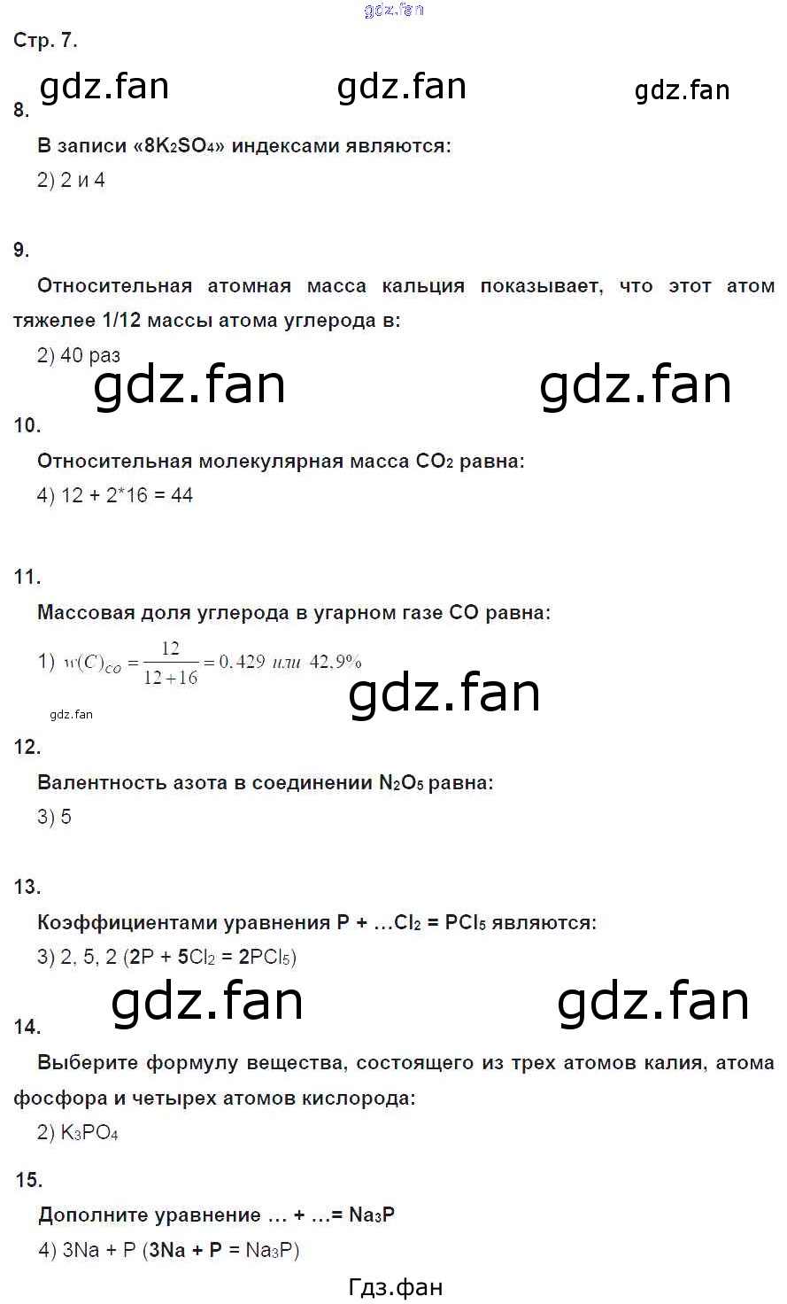 Проверка домашнего задания всегда занимает большое количество времени. На помощь приходит ГДЗ фан по Химии восьмого класса. Здесь собраны популярные ответы на 7 (№ 8, 9, 10, 11, 12, 13, 14, 15) Химия 8 класс тетрадь-экзаменатор Бобылёва О.Л.