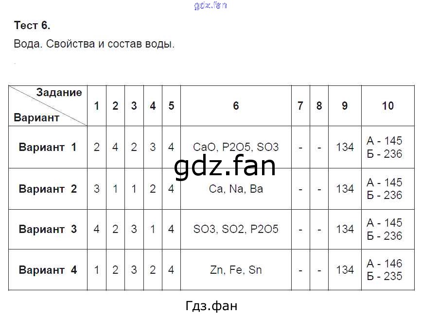 Проверка домашнего задания всегда занимает большое количество времени. На помощь приходит ГДЗ фан по Химии восьмого класса. Здесь собраны популярные ответы на 6 Химия 8 класс тесты Боровских Т.А. (к уч. Рудзитиса Г.Е.)