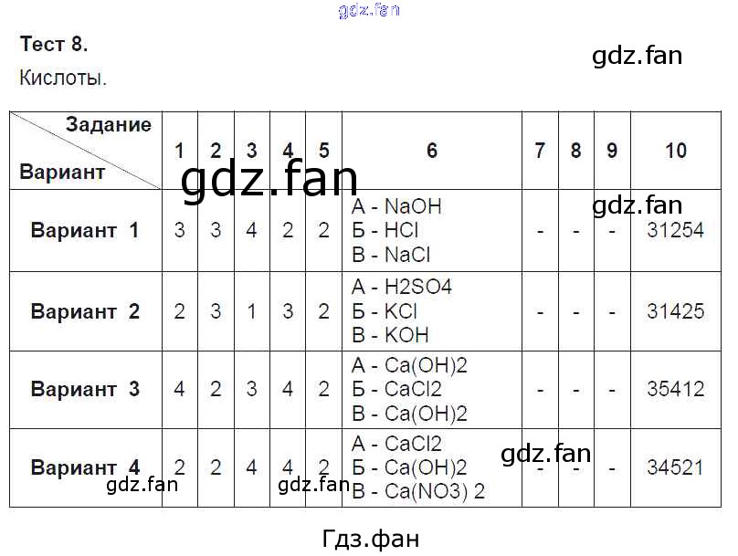 Проверка домашнего задания всегда занимает большое количество времени. На помощь приходит ГДЗ фан по Химии восьмого класса. Здесь собраны популярные ответы на 8 Химия 8 класс тесты Боровских Т.А. (к уч. Рудзитиса Г.Е.)