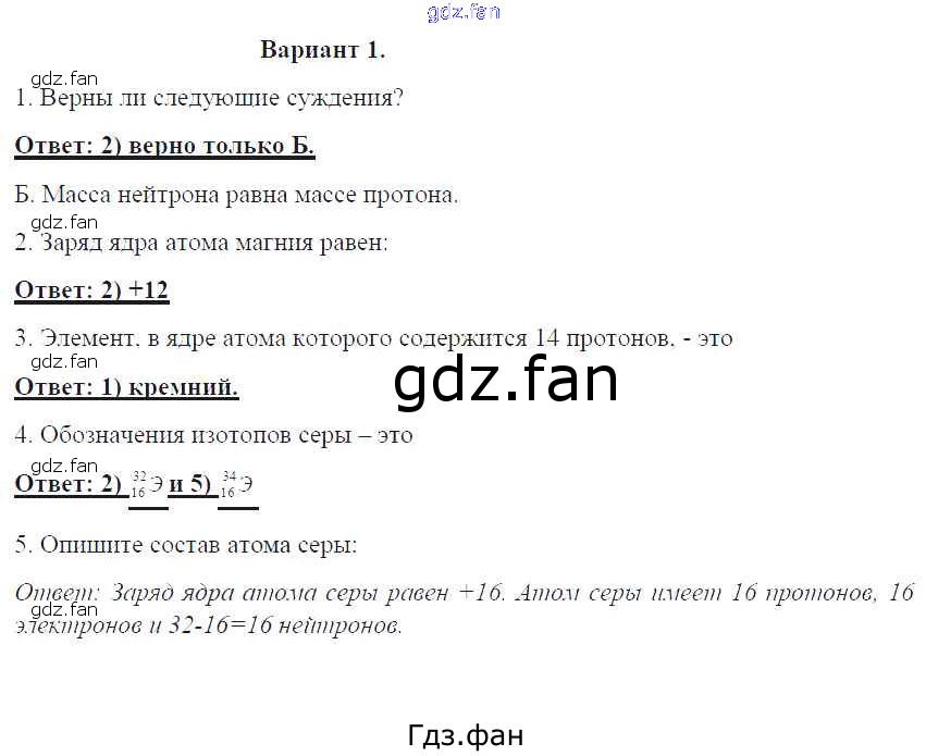 Проверка домашнего задания всегда занимает большое количество времени. На помощь приходит ГДЗ фан по Химии восьмого класса. Здесь собраны популярные ответы на 1 (стр. 8) Химия 8 класс контрольные работы Габриелян О.С.