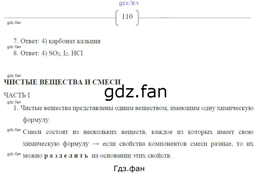 Проверка домашнего задания всегда занимает большое количество времени. На помощь приходит ГДЗ фан по Химии восьмого класса. Здесь собраны популярные ответы на 110 (№ 7, 8. Чистые вещества и смеси. Часть 1 № 1) Химия 8 класс рабочая тетрадь Габриелян О.С.