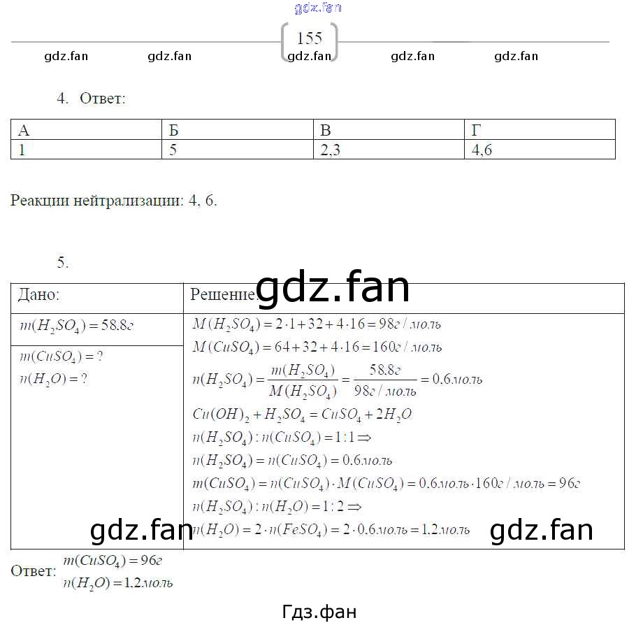 Проверка домашнего задания всегда занимает большое количество времени. На помощь приходит ГДЗ фан по Химии восьмого класса. Здесь собраны популярные ответы на 155 (№ 4, 5) Химия 8 класс рабочая тетрадь Габриелян О.С.