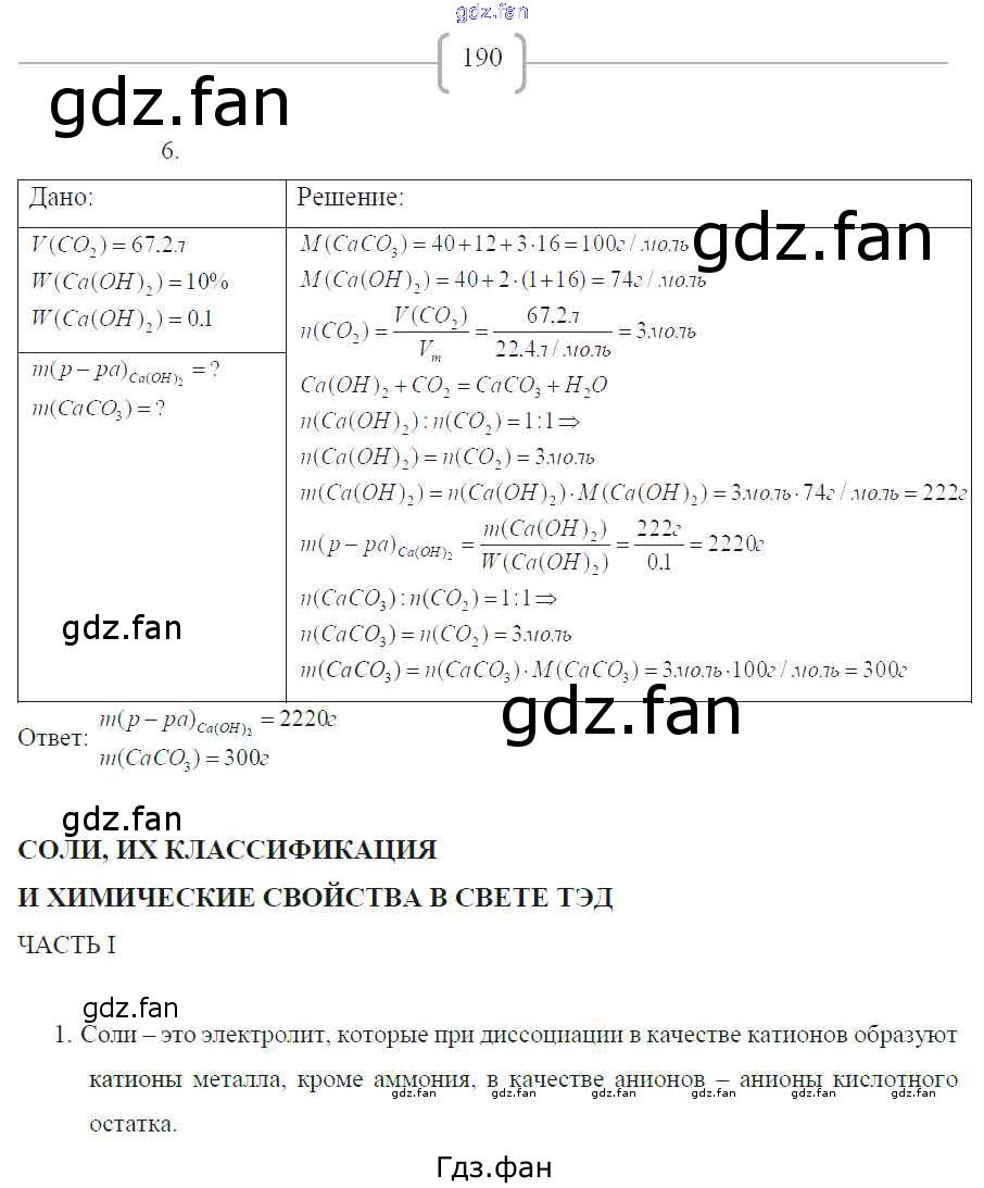Проверка домашнего задания всегда занимает большое количество времени. На помощь приходит ГДЗ фан по Химии восьмого класса. Здесь собраны популярные ответы на 190 (№ 6. Соли, их классификация и химические свойства в свете ТЭД. Часть 1 № 1) Химия 8 класс рабочая тетрадь Габриелян О.С.