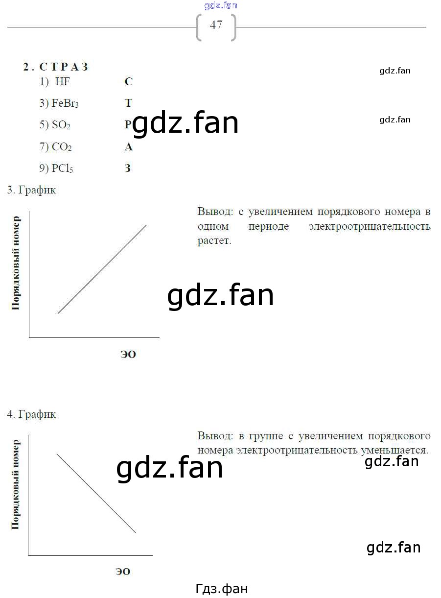 Проверка домашнего задания всегда занимает большое количество времени. На помощь приходит ГДЗ фан по Химии восьмого класса. Здесь собраны популярные ответы на 47 (№ 2, 3, 4) Химия 8 класс рабочая тетрадь Габриелян О.С.