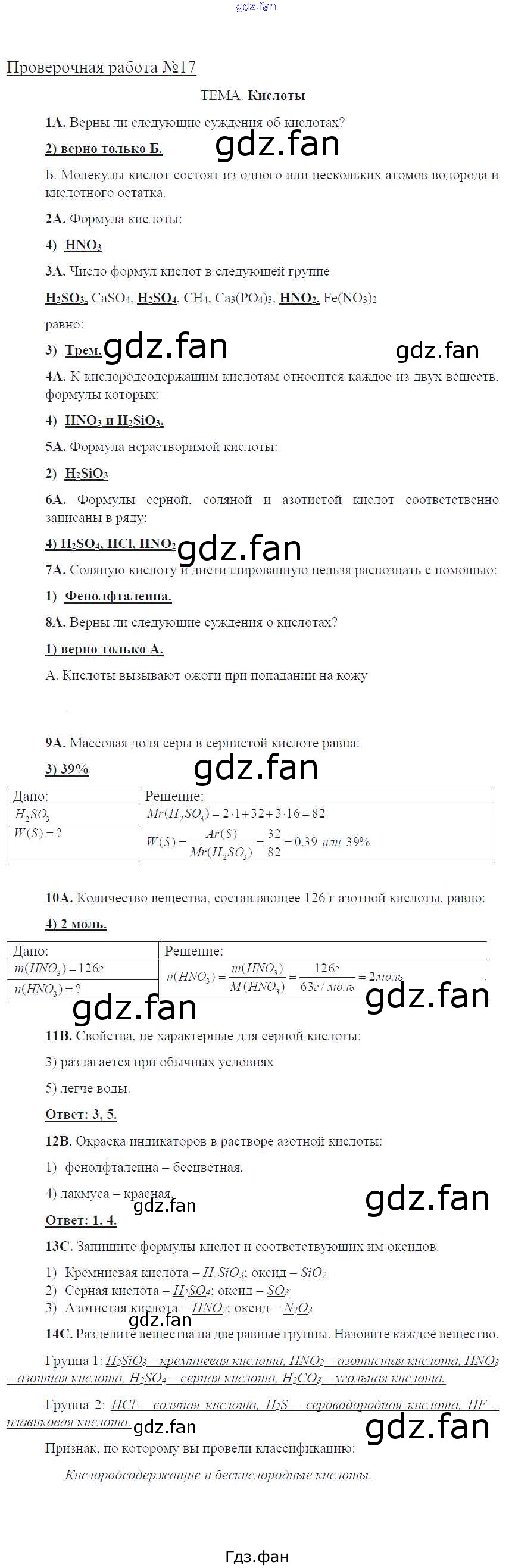 Проверка домашнего задания всегда занимает большое количество времени. На помощь приходит ГДЗ фан по Химии восьмого класса. Здесь собраны популярные ответы на 17 (стр. 54-56) Химия 8 класс тетрадь для оценки качества знаний Габриелян О.С.