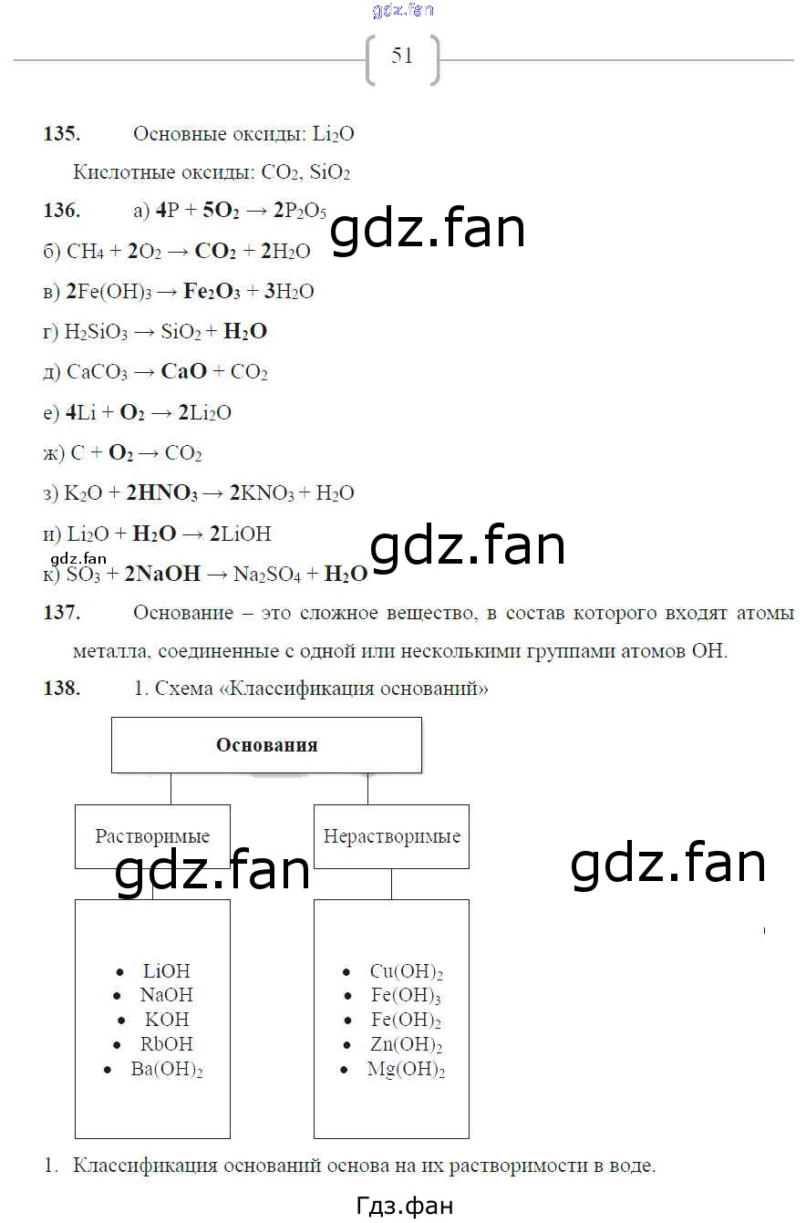 Проверка домашнего задания всегда занимает большое количество времени. На помощь приходит ГДЗ фан по Химии восьмого класса. Здесь собраны популярные ответы на 51 (№ 135, 136, 137, 138)) Химия 8 класс рабочая тетрадь Габрусева Н.И.
