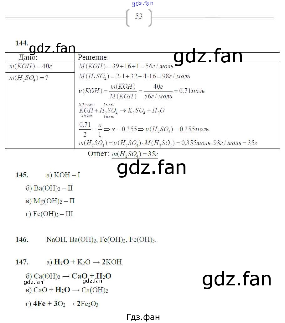 Проверка домашнего задания всегда занимает большое количество времени. На помощь приходит ГДЗ фан по Химии восьмого класса. Здесь собраны популярные ответы на 53 (№ 144, 145, 146, 147) Химия 8 класс рабочая тетрадь Габрусева Н.И.