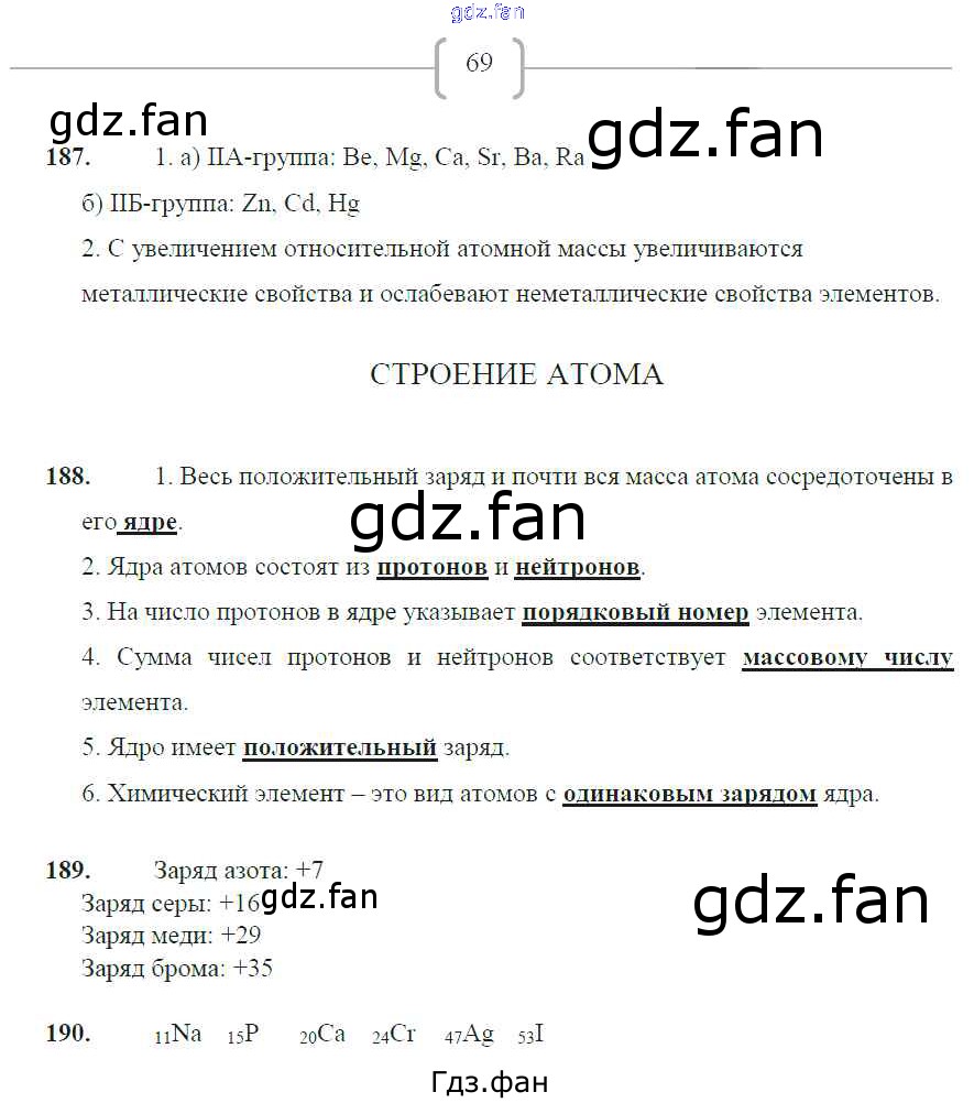 Проверка домашнего задания всегда занимает большое количество времени. На помощь приходит ГДЗ фан по Химии восьмого класса. Здесь собраны популярные ответы на 69 (№ 187, 188, 189, 190) Химия 8 класс рабочая тетрадь Габрусева Н.И.