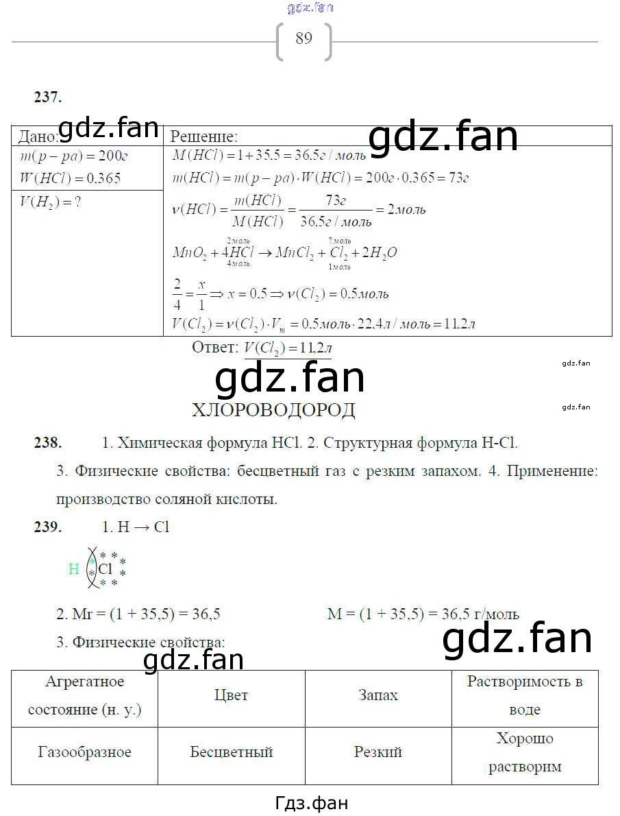 Проверка домашнего задания всегда занимает большое количество времени. На помощь приходит ГДЗ фан по Химии восьмого класса. Здесь собраны популярные ответы на 89 (№ 237, 238, 239) Химия 8 класс рабочая тетрадь Габрусева Н.И.
