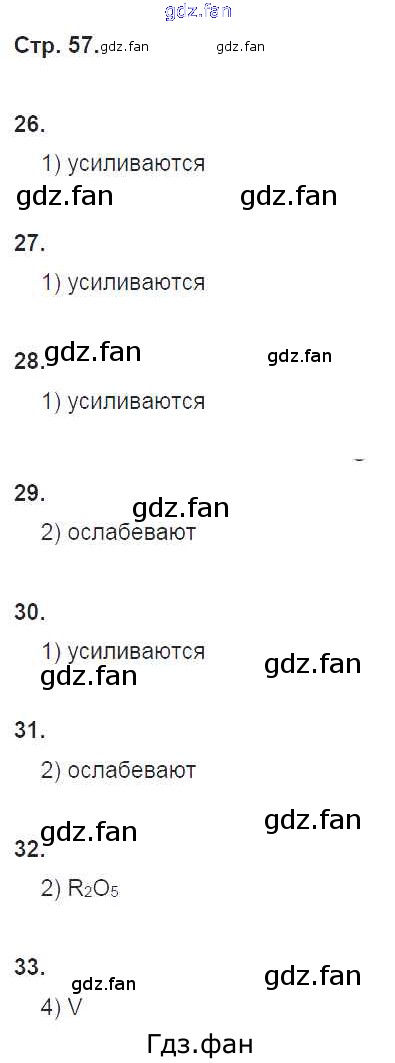 Проверка домашнего задания всегда занимает большое количество времени. На помощь приходит ГДЗ фан по Химии восьмого класса. Здесь собраны популярные ответы на 57 (№ 26, 27, 28, 29, 30, 31, 32, 33) Химия 8 класс тетрадь-тренажёр Гара Н.Н.