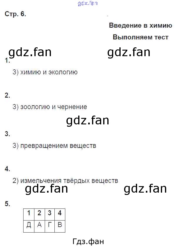 Проверка домашнего задания всегда занимает большое количество времени. На помощь приходит ГДЗ фан по Химии восьмого класса. Здесь собраны популярные ответы на 6 (Введение в химию № 1, 2, 3, 4, 5) Химия 8 класс тетрадь-тренажёр Гара Н.Н.