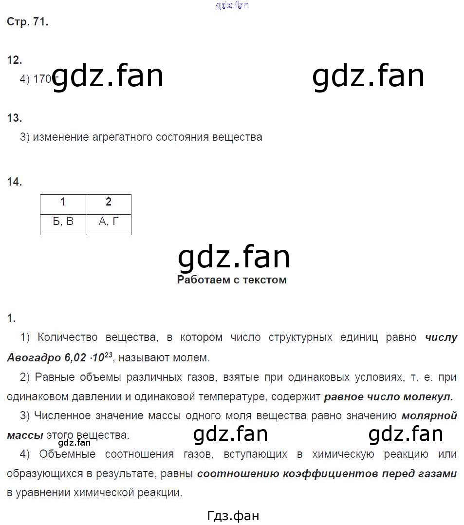 Проверка домашнего задания всегда занимает большое количество времени. На помощь приходит ГДЗ фан по Химии восьмого класса. Здесь собраны популярные ответы на 71 (№ 12 ,13, 14. Работаем с текстом № 1) Химия 8 класс тетрадь-тренажёр Гара Н.Н.