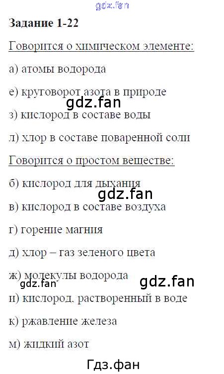 Проверка домашнего задания всегда занимает большое количество времени. На помощь приходит ГДЗ фан по Химии восьмого класса. Здесь собраны популярные ответы на 1. 22 (стр. 8) Химия 8 класс задачник Кузнецова Н.Е.