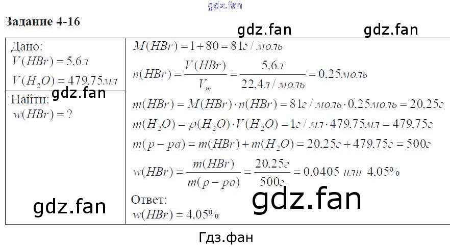 Проверка домашнего задания всегда занимает большое количество времени. На помощь приходит ГДЗ фан по Химии восьмого класса. Здесь собраны популярные ответы на 4. 16 (стр. 43) Химия 8 класс задачник Кузнецова Н.Е.