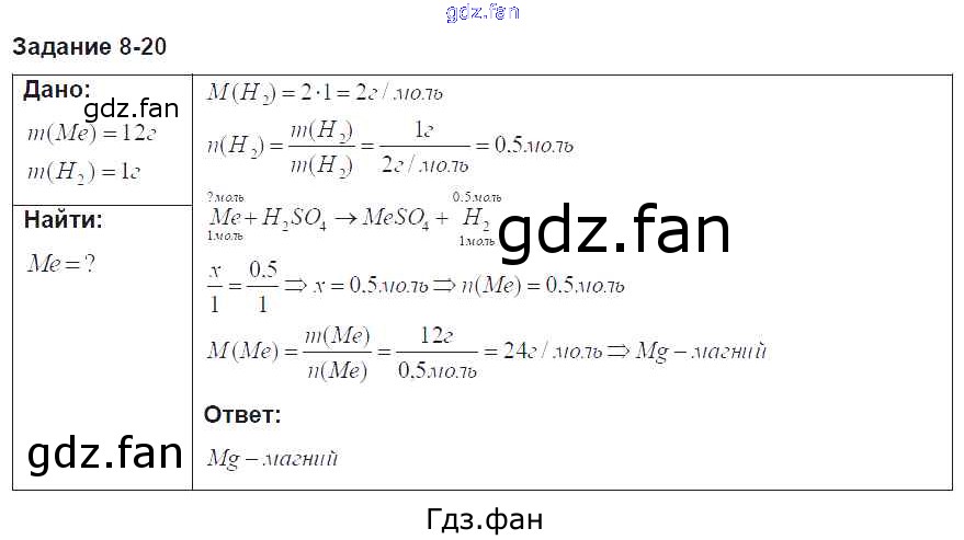 Проверка домашнего задания всегда занимает большое количество времени. На помощь приходит ГДЗ фан по Химии восьмого класса. Здесь собраны популярные ответы на 8. 20 (стр. 98) Химия 8 класс задачник Кузнецова Н.Е.